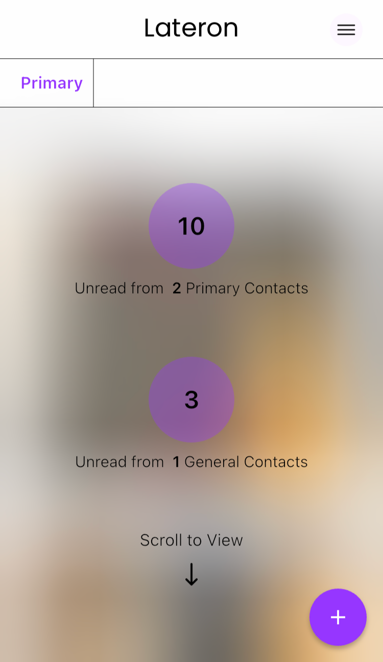 To start, we’d love for you to only share your updates with other Lateron beta testers. If you have a contact that is a Lateron user, they’ll show up in purple in your contacts. We’ll share our updates with you too! In the future, you’ll be able to share with more people.